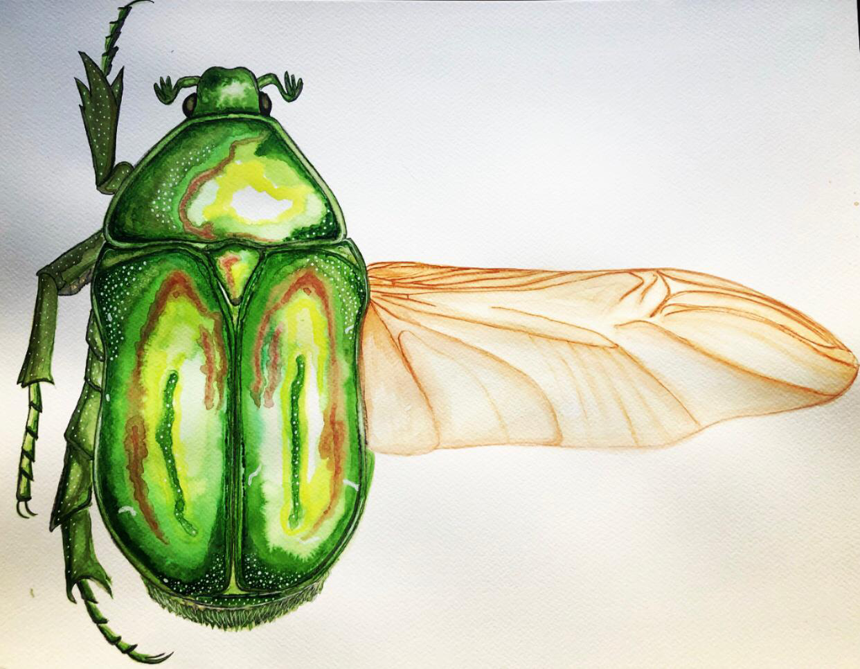 ROSE CHAFER 35 X 50 WATERCOLOR PAINTING